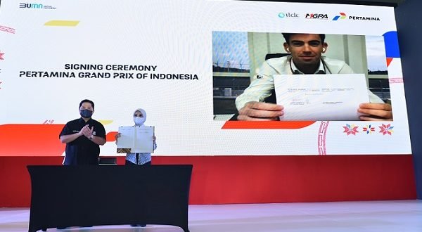 Hal ini melengkapi dukungan sebelumnya yang telah Pertamina berikan untuk Pertamina Mandalika International Street Circuit. Mewujudkan langkah tersebut, Pertamina menandatangani perjanjian kerjasama dengan Dorna Sports. Penandatanganan dilakukan secara langsung oleh Direktur Utama Pertamina, Nicke Widyawati dan Managing Director Dorna Sports, S.L, Carlos Ezpeleta (secara online) dan disaksikan oleh Menteri BUMN, Erick Thohir di Jakarta, Rabu 9 Februari 2022.