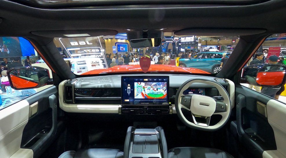 Kita tengok perlahan ya. Pada bagian eksterior, peningkatan dimulai dari penggunaan ban berukuran 245/55 R19 yang memberikan ground clearance mencapai 225 mm dalam kondisi tanpa beban dan 195 mm saat bermuatan penuh. Hal ini menjadikan Chery J6T semakin siap menghadapi berbagai medan, termasuk lintasan offroad yang menantang, berlumpur, bahkan banjir tanpa rasa khawatir.