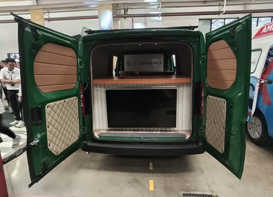 “Karoseri yang dilakukan pada Mitra EV ini mencakup area masak di sisi luar kendaraan, meja pelayanan dengan TV digital, storage terbuka, awning, serta kursi lipat bagi pelanggan. Di bagian atap tersedia roof rack multifungsi yang juga dapat digunakan sebagai media promosi. Inisiatif ini membuka peluang baru bagi pengusaha kuliner yang membutuhkan kendaraan operasional fleksibel dan hemat energi,” jelas Danang.