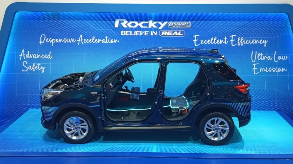 Rocky Hybrid mengusung teknologi e-Smart Hybrid yang memberikan sensasi berkendara ala mobil listrik dengan mesin bensin yang berfungsi sebagai generator untuk mengisi daya baterai, sehingga mobil ini sangat praktis tanpa perlu charging atau mengisi daya listrik. SUV ini dibanderol Rp 299.850.000 (OTR DKI Jakarta).