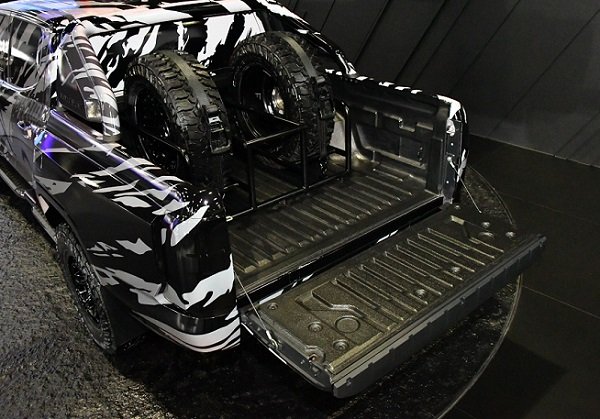 Selanjutnya, mobil konsep ini dilengkapi dengan over fender depan dan belakang serta ban untuk medan lumpur, memberikan tenaga yang kuat untuk bersaing dalam reli yang menantang dan melintasi berbagai medan.
