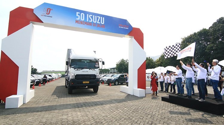 Rangkaian acara “50 Isuzu Menemani di Jalan” dimulai dengan menggelar konvoi 50 unit kendaraan unggulan Isuzu seperti 4 Isuzu Giga, 21 Isuzu Elf, 12 Isuzu Traga,12  Isuzu Mu-X, dan 1 Isuzu D-Max yang menunjukan kehadiran Isuzu selama 5 dekade melayani para pengusaha di Tanah Air dengan kendaraan-kendaraan yang fungsional, andal, dan ramah lingkungan untuk berbagai jenis usaha.