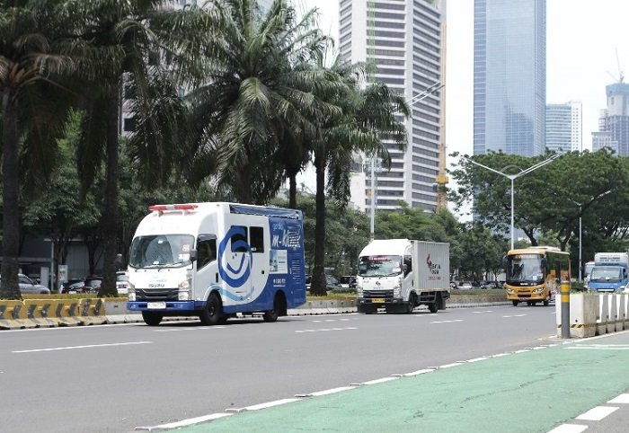 Iringan-Iringan 50 kendaraan Isuzu saat membelah Kota Jakarta dalam rangkaian acara konvoi “50 Isuzu Menemani di Jalan”. Ist