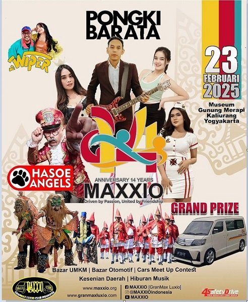 Perayaan ulang tahun ke-14 MAXXIO ini dimeriahkan dengan berbagai acara, antara lain bazar UMKM & otomotif, car meet-up contest, penampilan kesenian daerah berupa tari Gedruk & pasukan Bregodo Yogyakarta, bintang tamu nasional Pongky Barata, serta berbagai macam games & doorprize dengan hadiah utama satu unit Daihatsu Luxio.