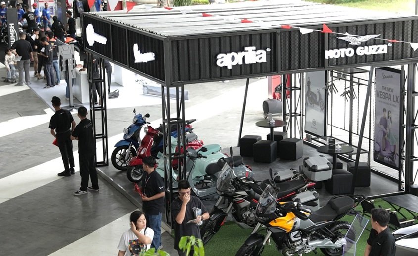 Di sela pameran mobil, belasan Vespa klasik menambah nuansa retro yang hangat, menarik perhatian kolektor dan juga penggemar skuter.