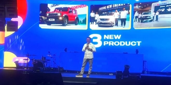 Walau dia belum mengungkapkan secara pasti SUV apa yang akan dirilis, dia memastikan produk baru yang akan hadir sangat menarik untuk ditunggu. Apalagi saat itu juga layar LCD di latarbelakang muncul tulisan tulisan New Model, dan New Refreshments. Tebakannya, ini SUV listrik yang pernah tampil di GIIAS 2024 lalu yakni eVX – yang di India menjadi Vitara listrik produksi massal dengan nama eVitara.