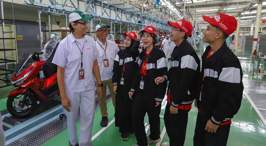 Sesi ini disambut antusias peserta dan memberikan semangat baru bagi mereka untuk menjadi lokomotif perubahan di masa mendatang. Wawasan dan pengalaman para siswa AHM Best Student semakin diperkaya dengan mendapat kesempatan melihat langsung proses produksi sepeda motor Honda di pabrik terbaru AHM di Kawasan Industri GIIC, Kota Deltamas, Cikarang Pusat, Kab Bekasi Jawa Barat.