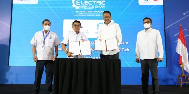PEVS 2022 pada Kamis (28/7) menjadi saksi penandatanganan nota kesepahaman antara Garuda Indonesia dengan Perkumpulan Industri Kendaraan Listrik Indonesia (PERIKLINDO), dan produsen motor listrik Smoot dengan ABC Lithium.