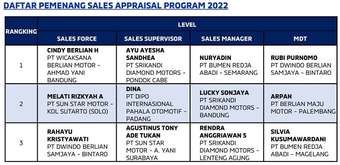 Dalam menentukan pemenang pada kontes ini, MMKSI telah melakukan penilaian sejak bulan April 2022 serta melakukan beberapa tahapan seleksi yang diselenggarakan secara tatap muka. MMKSI memberikan penghargaan bagi pencapaian yang diraih oleh dealer selama kontes berlangsung. Pelaksanaan agenda ini sejalan dengan branding Life’s Adventure di mana MMKSI berharap dapat terus mendorong dealer resmi Mitsubishi Motors di seluruh Indonesia untuk terus memberikan pengalaman terbaik bagi para konsumen.