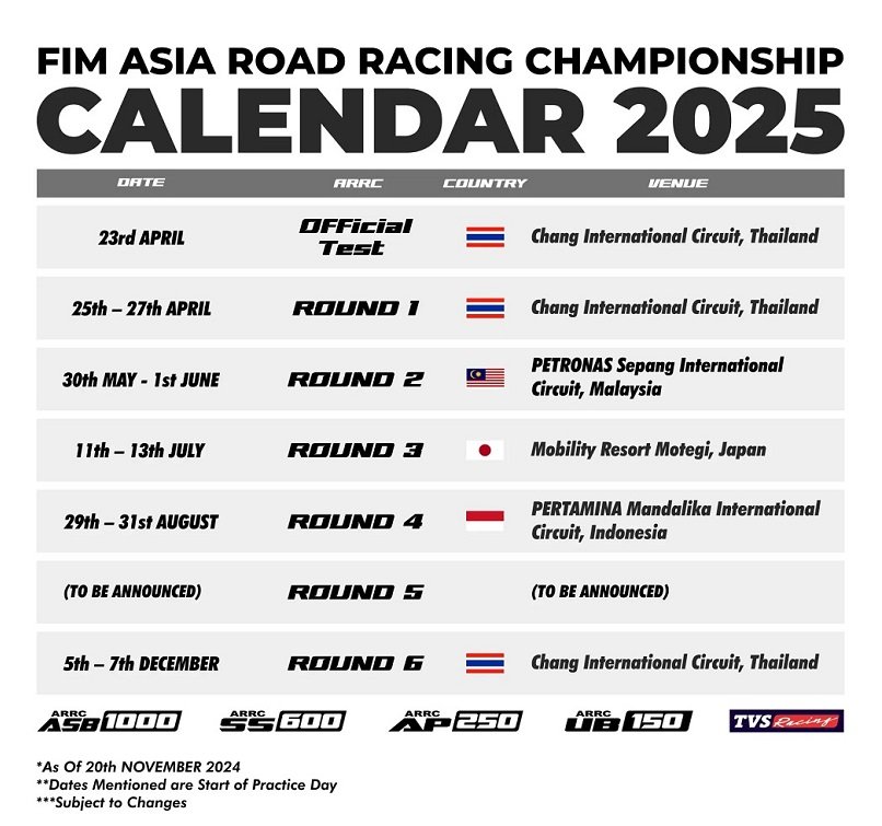 Seri ketiga ajang balap ARRC Motegi, Jepang akan berlangsung Sabtu (12/7) dan Minggu (13/7) pada pukul 12:30 WIB untuk kelas AP250 dan kelas SS600 pada pukul 13:30 WIB. Kedua balapan dapat disaksikan pada channel Youtube Asia Road Racing Championship.
