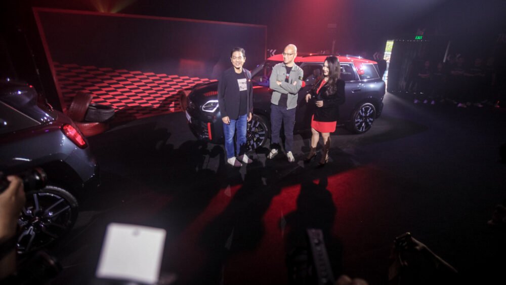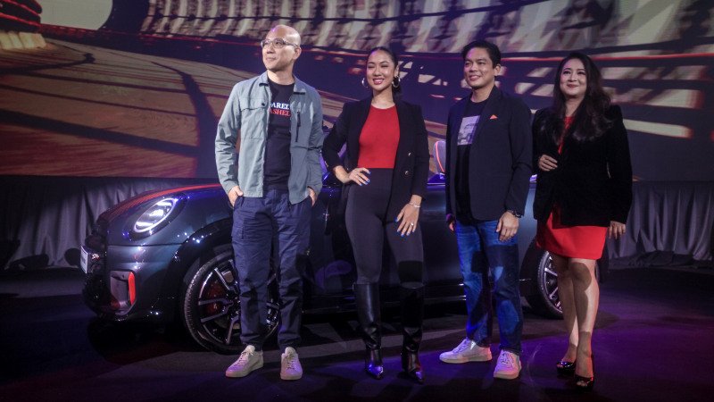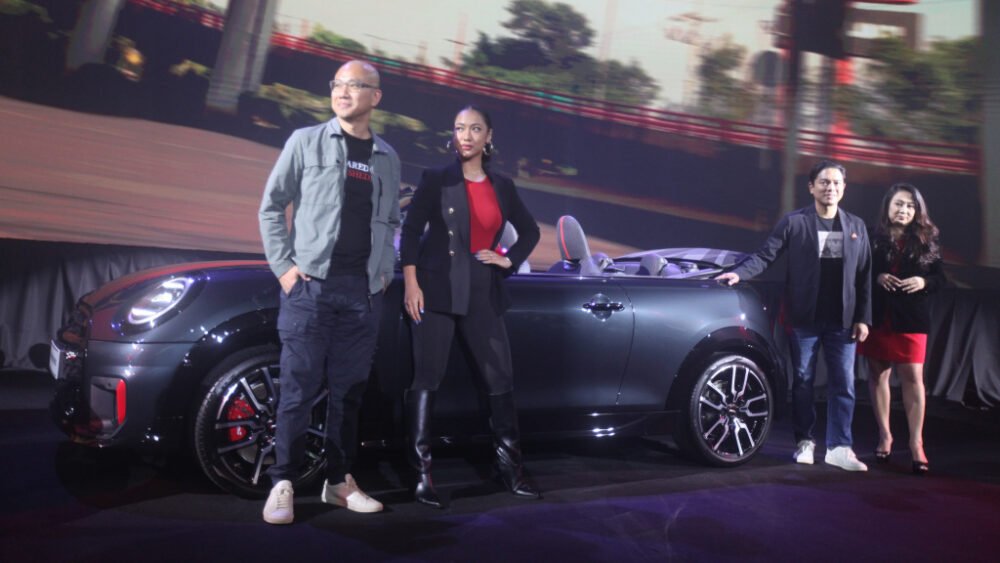 Jakarta, NextID – Head of MINI Asia Daren Ching (kiri) berbincang dengan President Director BMW Group Indonesia Peter Medalla (kedua kiri) dan Director of Communications BMW Group Indonesia Jodie O’tania (kanan) saat peluncuran MINI John Cooper Works model terbaru di Jakarta, Jumat (23/5/2025). BMW Group Indonesia resmi meluncurkan lima model terbaru MINI John Cooper Works (JCW) dengan menghadirkan kombinasi antara desain dan fitur modern serta performa yang maksimal baik versi bensin maupun listrik. Foto: TheNext.id