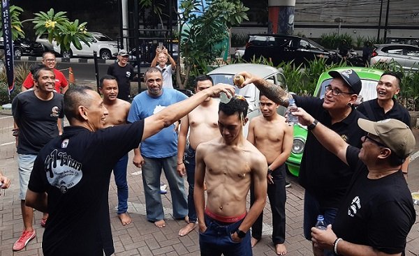 Jelang akhir acara, ada pelantikan 5 anggota baru. Jika dulu, pelantikan menjadi sah dilakukan setelah mereka disiram oli bekas, namun karena terkesan “barbar,” kini diganti disiram air putih. Tetapi kemarin terlihat ada yang menumpahkan kuah soto ke kepala anggota baru. Seru, tapi  ada yang matanya perih karena ternyata tersiram kuah soto pedas.