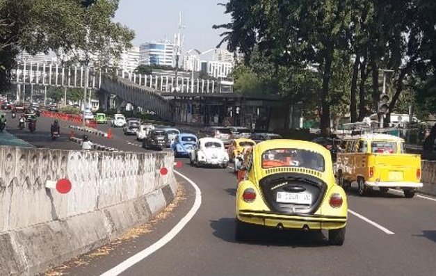 Rencana pada Sabtu (10/6) itu mereka kumpul di Pondok Indah Plaza, Jakarta Selatan, dan pukul 07.30 bendera start akan dikibarkan. Tapi itu rencananya, tapi barulah setelah jelang pukul 10.00-an, mulai terkumpul 42 VW dan segera berangkat konvoi via Pondok Indah mengitari Senayan, Sudirman, dan berakhir di Papabro Café/MotoVillage – Antasari.