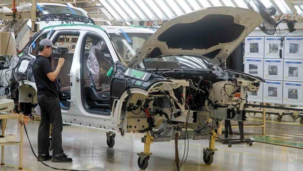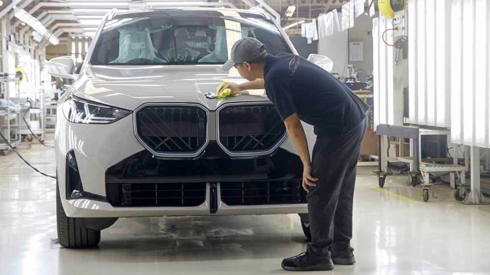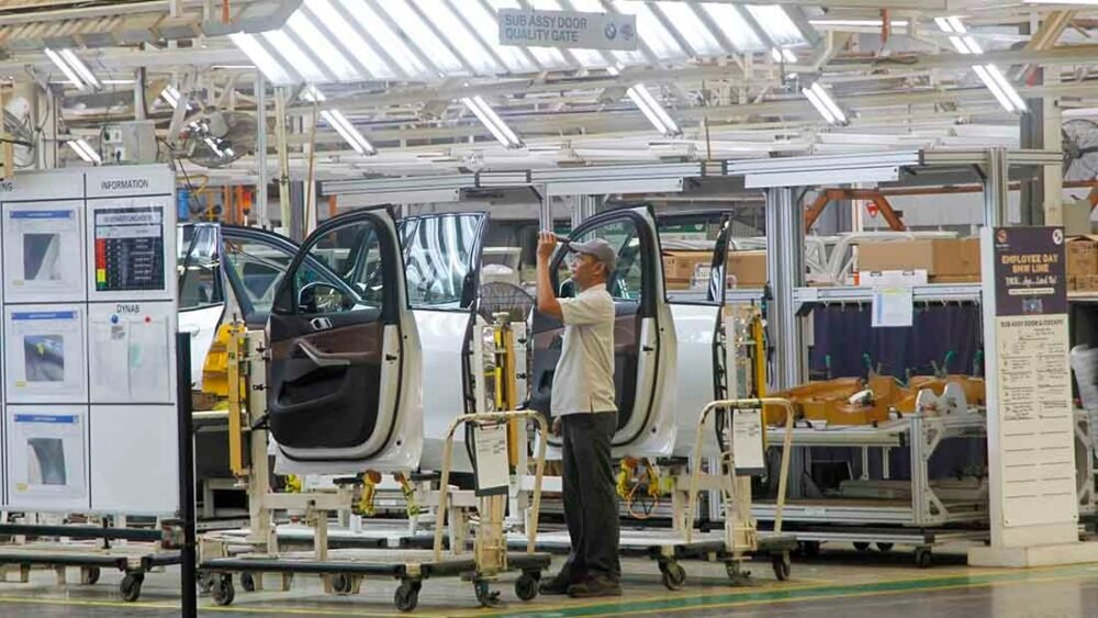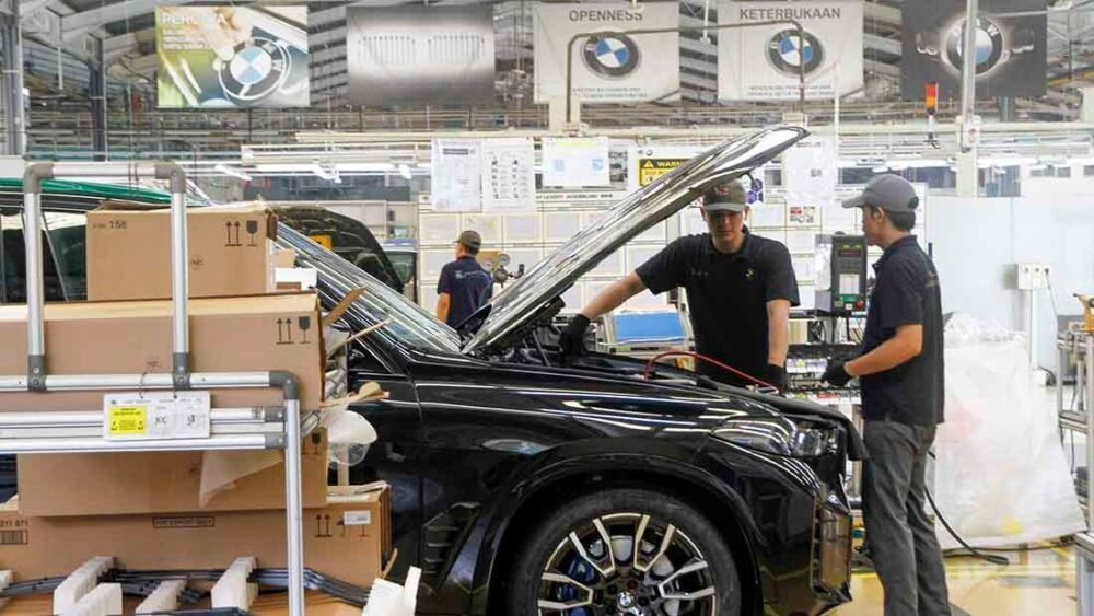 Jakarta, NextID – President Director BMW Group Indonesia Peter Medalla (kedua kiri) berbincang dengan President Director PT Gaya Motor Triani Handoyo (kanan), Director of Communication BMW Group Indonesia Jodie O`tania (kiri) dan Management Production Partner Indonesia of BMW Group Production Network 2 Matthias Ostermeier (kedua kanan) berbincang saat mengunjungi BMW Production Network 2, Gaya Motor, Sunter, Jakarta, Jumat (11/7/2025). Pabrik tersebut merakit kendaraan model terbaru dari BMW All-New BMW X3 dan New BMW 2 Series Gran Coupe secara lokal dengan komponen yang didatangkan dari luar negeri seperti Jerman dan Amerika serta dipantau oleh tim ahli agar memenuhi standra global. Foto: TheNext.id