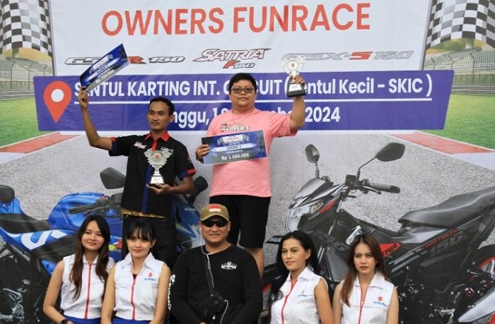 Selain itu, bagi peserta dari kelas Satria F150 Standard dan Open, yang diketahui baru pertama kali mengikuti sesi balap satu merek Suzuki, ajang Owners Fun Race 2024 dirasakan menjadi kesempatan untuk menyelami dunia adu kecepatan secara lebih jauh serta benar. “Kalau bagi saya bisa menambah peluang semakin sering balapan. Apalagi ajang ini khusus motor Suzuki, bisa cari teman dan wawasan untuk bisa beradaptasi, sekalian mengenal modifikasi-modifikasi yang pas untuk balapan. Semoga ajang ini semakin sering diselenggarakan,” tutur Avil Maulana Akbar, salah satu peserta Satria F150 Standard yang menjadi pemenang peringkat pertama, dan Mohammad Fadhil Adinugroho sebagai peringkat kedua.