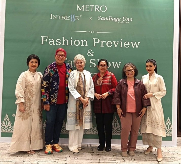 Usai acara fashion preview, Tuty Cholid (ketiga kanan) berfoto bersama dengan jurnalis dan fashion designer senior di Metro. Ist